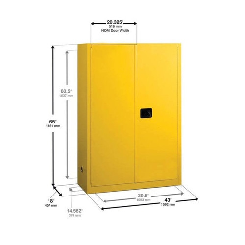 • 45 Gallon, 2 Shelves, 2 Doors, Manual Close, Flammable Cabinet, Sure-Grip® EX, Yellow