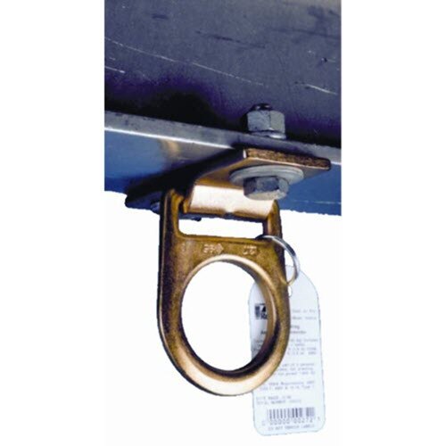 Bolted D-ring provides a permanent anchorage connector on the bottom of I-beams