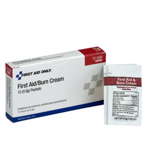 Burn Cream packets with 12 per box. The burn cream cools and soothes minor burns, sun burns, scalds and abrasions. The gel moisturizes and forms a protective barrier on the minor injury. Individual single use packets are easy and convenient to use.