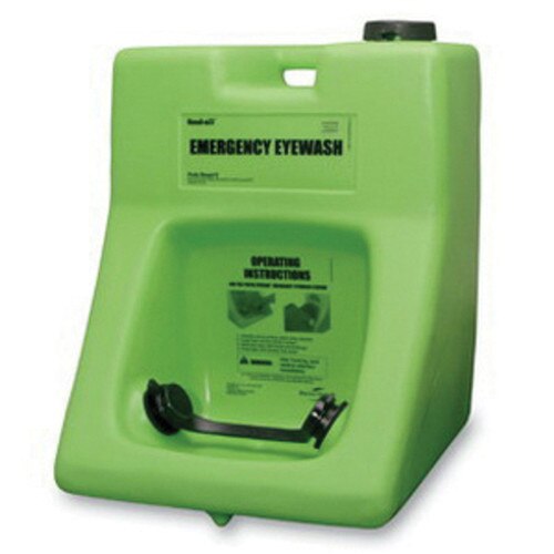 Honeywell Safety Eyewash Station, Portable, Series: Fendall Porta Stream® II, 2 Heads, Cart/Wall Mount, Green, Elastomeric Pull Strap Operation, 19-3/4 in Width, 19 in D, 24 in Height, Includes: 180 oz Eyesaline Concentrate Bottle, Mounting Bracket, Inspection Tag, Sign and Instruction Booklet