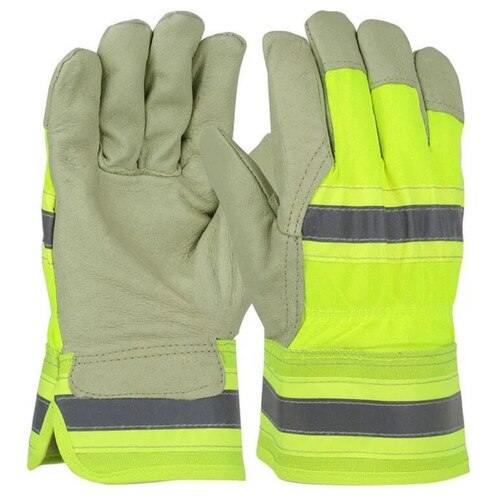 • PIGSKIN LEATHER PALM, BLUE STRIPED FABRIC BACK, 120G THERMAL LINING, SAFETY CUFF