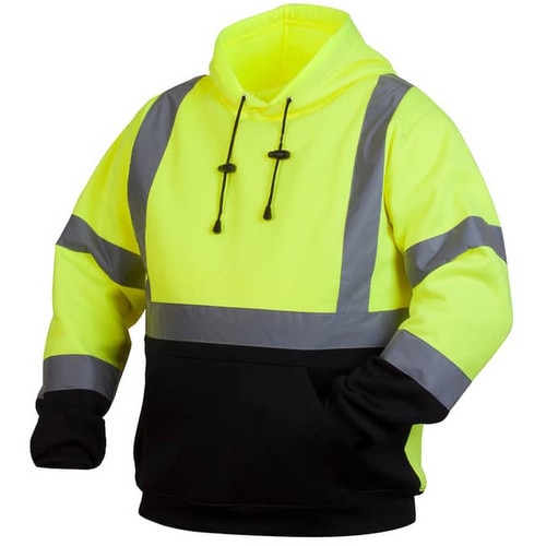 Pyramex Sweatshirt, Hi Viz, Hood, Pull Cord, ANSI TYPE R/Class 3, Lime with Black Bottom, Tall