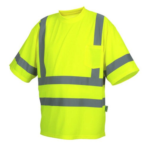 Hi-vis lightweight polyester moisture-wicking t-shirt.