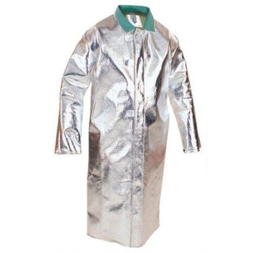 Steel Grip Coat, 50 in Length, Aluminized Carbon/Kevlar®, Snap Closure, Sew-Serged Seam, Cotton, 14 oz Fabric Weight
