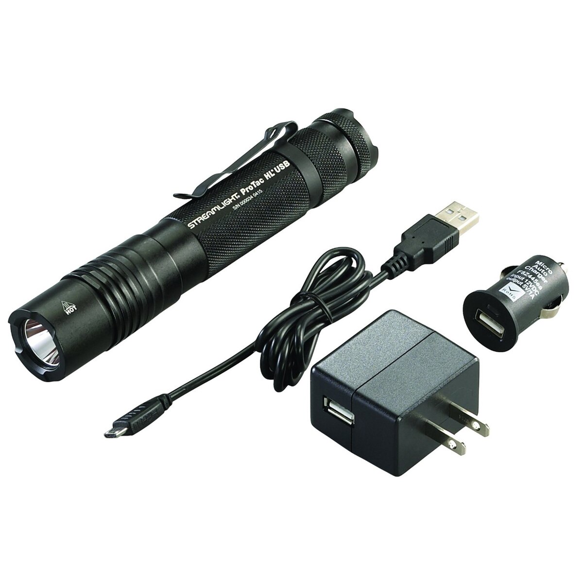 - Includes USB cord, removable pocket clip and tear resistant nylon holster