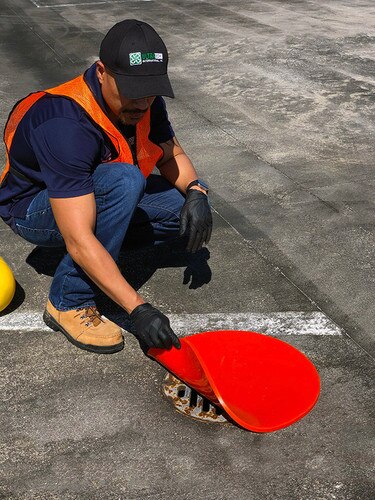 This storm drain cover is constructed with a flexible, non-absorbing material and reinforced tear-resistant mesh, the pad is designed to quickly and effectively seal a drain in an emergency. NOTE: Not intended for long-term outdoor use (more than two (2) hours), as UV exposure and/or heat for extended periods can degrade the product.