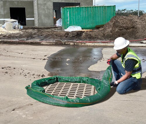 - Use in front of storm drains, around downspouts, in gullies and ditches, or anywhere there is potential for harmful stormwater runoff.
