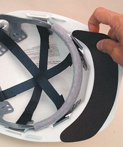 Banana-Brim Grinding Catcher Catch metal filings before they reach the eye area. Banana-shaped magnet is designed to attract small loose airborne ferrous-metal particles. Made of .030" flexible magnetic copolymer vinyl. 7 3/4"L x 1 3/4"W. Adhesive back. Can be trimmed to fit all hard hat models. Note: Always use proper eye, face and head protection - such as safety goggles, safety glasses or face shield and hard hat - when using grinding equipment.